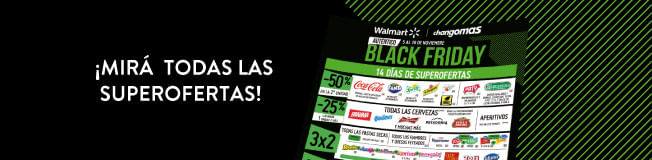 BLACK FRIDAY: VÁLIDO PARA EL TOTAL DE LAS TIENDAS WALMART Y CHANGOMAS DE LA REPÚBLICA ARGENTINA ENLISTADAS AL FINAL DE LA PUBLICACIÓN. SOLO PARA CONSUMO FAMILIAR. TODOS LOS PRODUCTOS SON DE ORIGEN ARGENTINA EXCEPTO LOS REFERENCIADOS ESPECÍFICAMENTE EN CADA UNO. NO INCLUYE PRODUCTOS DE PRECIOS CUIDADOS. EL DESCUENTO SE APLICA SOBRE EL PRECIO REGULAR Y NO ES ACUMULABLE CON OTRAS PROMOCIONES VIGENTES. NO INCLUYE PRECIOS CUIDADOS. LAS FOTOS SON SOLO ILUSTRATIVAS. EL PRECIO REGULAR /ANTERIOR DE ESTE PRODUCTO FUE TOMADO EN TIENDAS DE CABA Y GBA PUEDE VARIAR DE ACUERDO A LA ZONA GEOGRÁFICA EN DONDE SE ENCUENTRA LA TIENDA. PRECIOS VÁLIDOS DEL 5 AL 18 DE NOVIEMBRE DEL 2020 INCLUSIVE O HASTA AGOTAR STOCK LO QUE OCURRA PRIMERO. WAL-MART ARGENTINA SRL - CUIT: 30-6 78 138 30-0 - BOLIVIA 58 31 - C1419DVM – CAPITAL FEDERAL. OFICINA DE DEFENSA DEL CONSUMIDOR COMODORO RIVADAVIA: TEL: (0297) 446 5474 / (0297) 406 8 992 / 08 00-333-318 4 / 08 00-333-0706 / E-MAIL: CONSUMIDORCOMODORO@YAHOO .COM .AR. LA LEY PROVINCIAL Nº 5547 TIENE POR OBJETO LA DEFENSA DE LOS HABITANTES DE MENDOZA EN LAS OPERACIONES DE CONSUMO Y USO DE BIENES Y SERVICIOS. CONSULTA PERMANENTEMENTE AL TEL. 08 00- 2226 6 78.